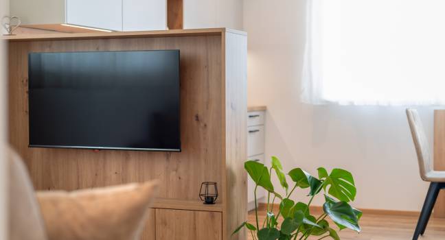 Dotazione: cucina-soggiorno completamente attrezzata con divano letto matrimoniale, piano cottura a induzione, forno, frigorifero con congelatore, lavastoviglie, macchina per il caffè, biancheria da letto, asciugamani, TV a schermo piatto con satellite, WiFi gratuito, asciugacapelli, invisibile, raffreddamento a soffitto integrato per una sicurezza, clima piacevole nella stanza nei mesi caldi, appartamento per non fumatori, non sono ammessi animali