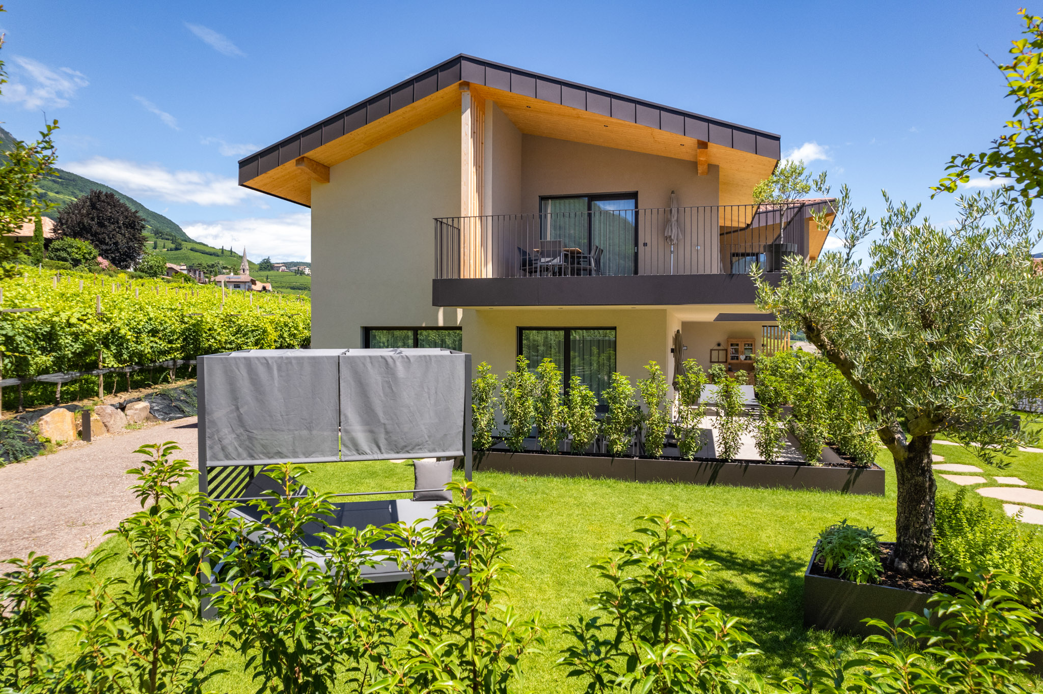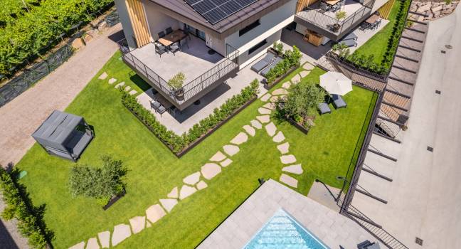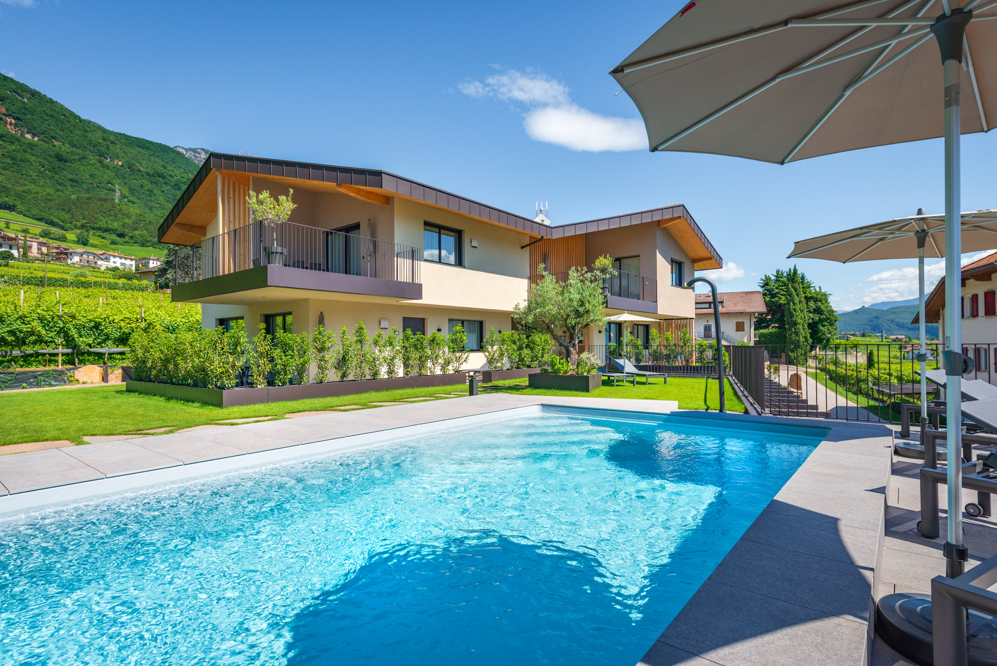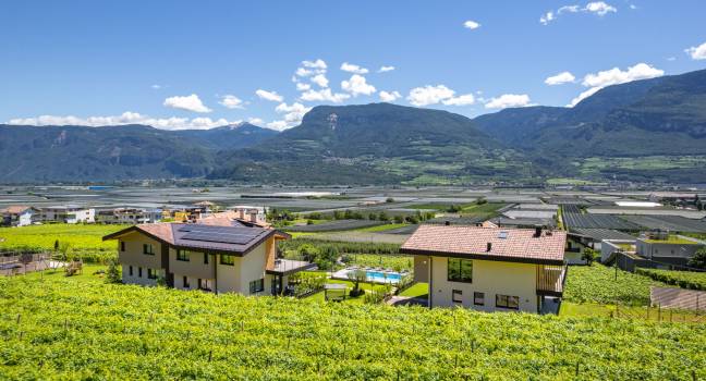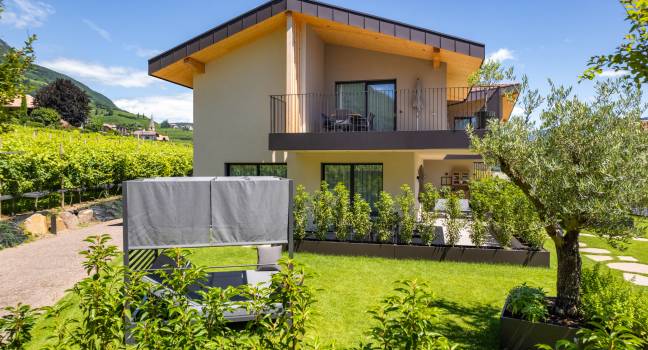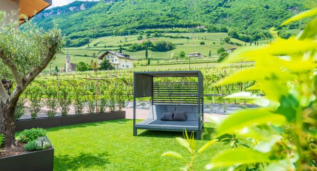 Circondato da ondulati vigneti, lontano dal caos e dalla frenesia del centro di Termeno, troverete il luogo di vacanza dei vostri sogni nel nuovo Santinhof.