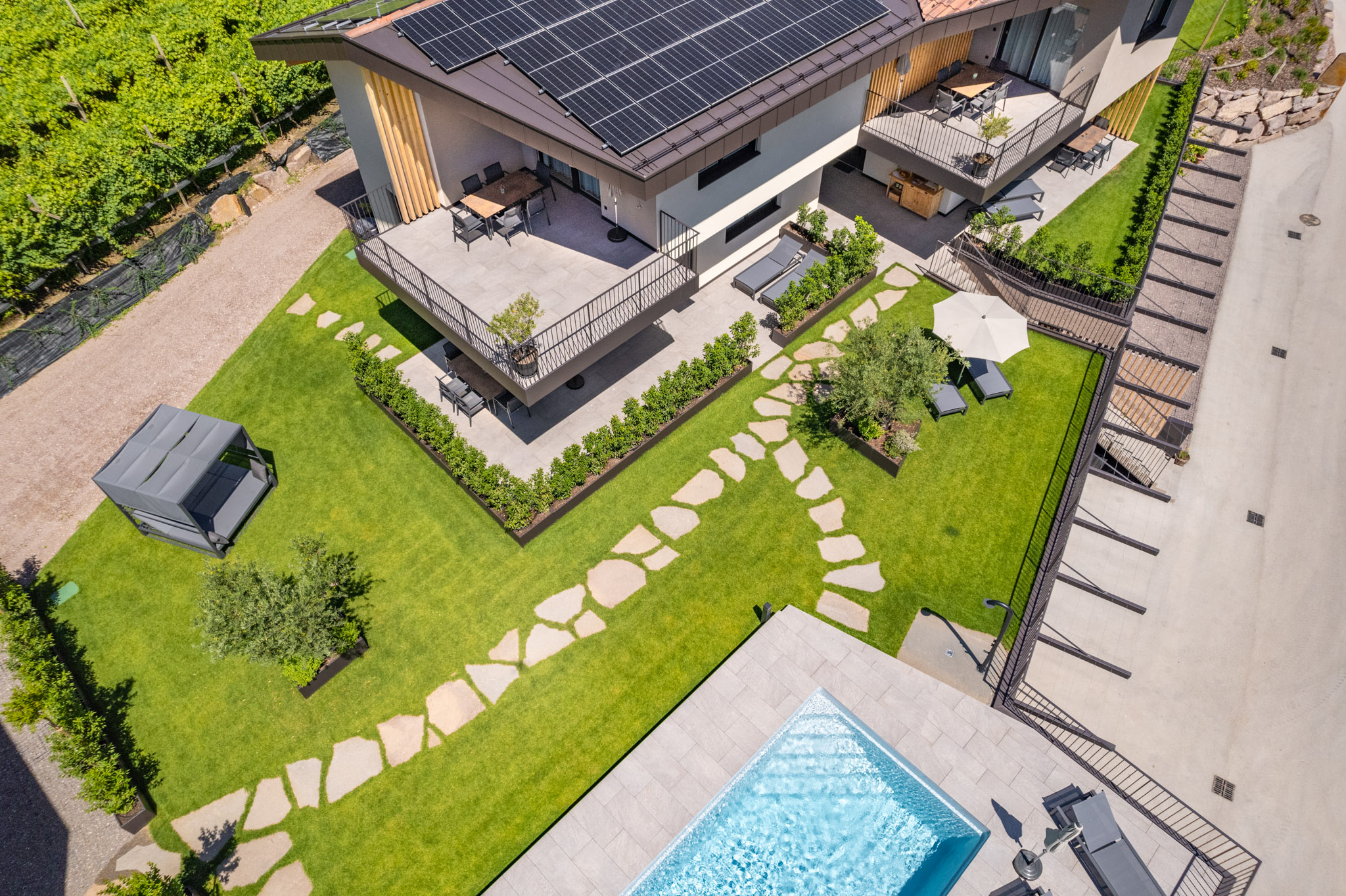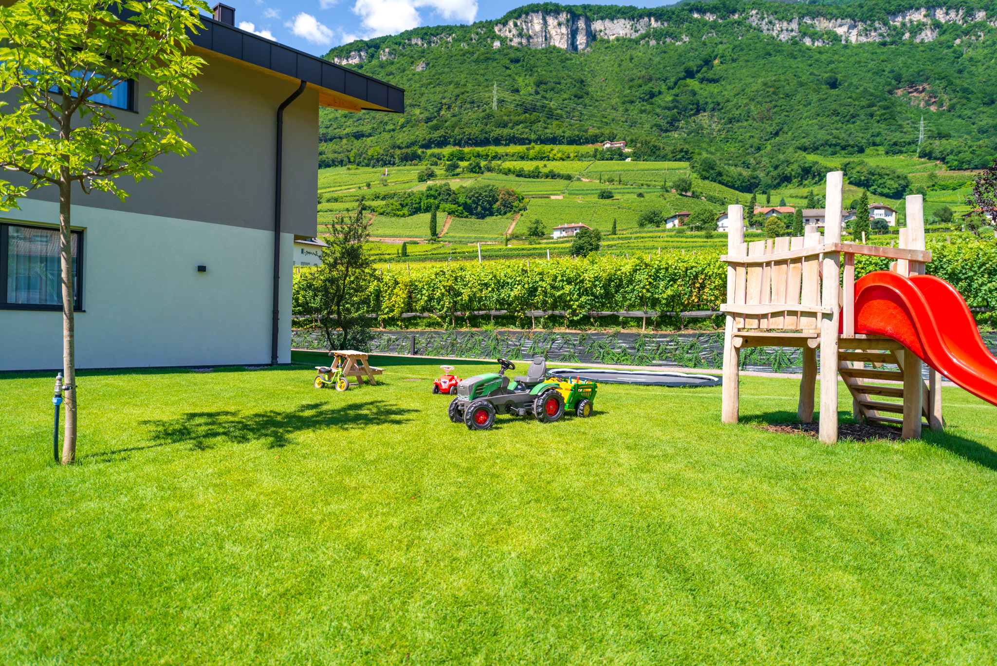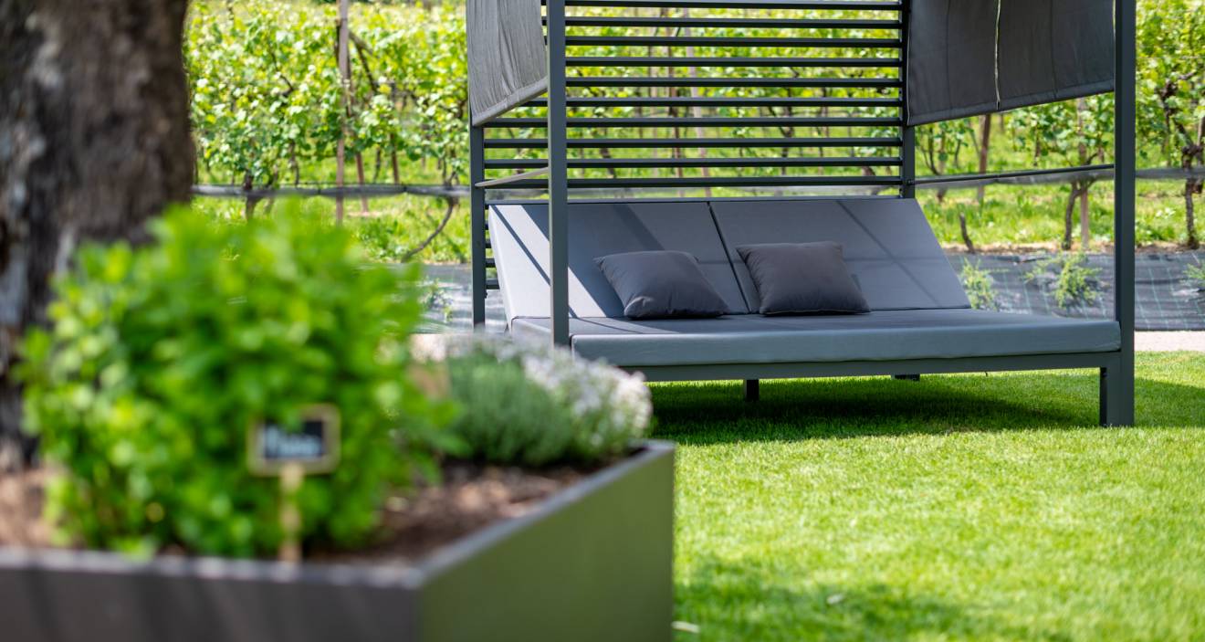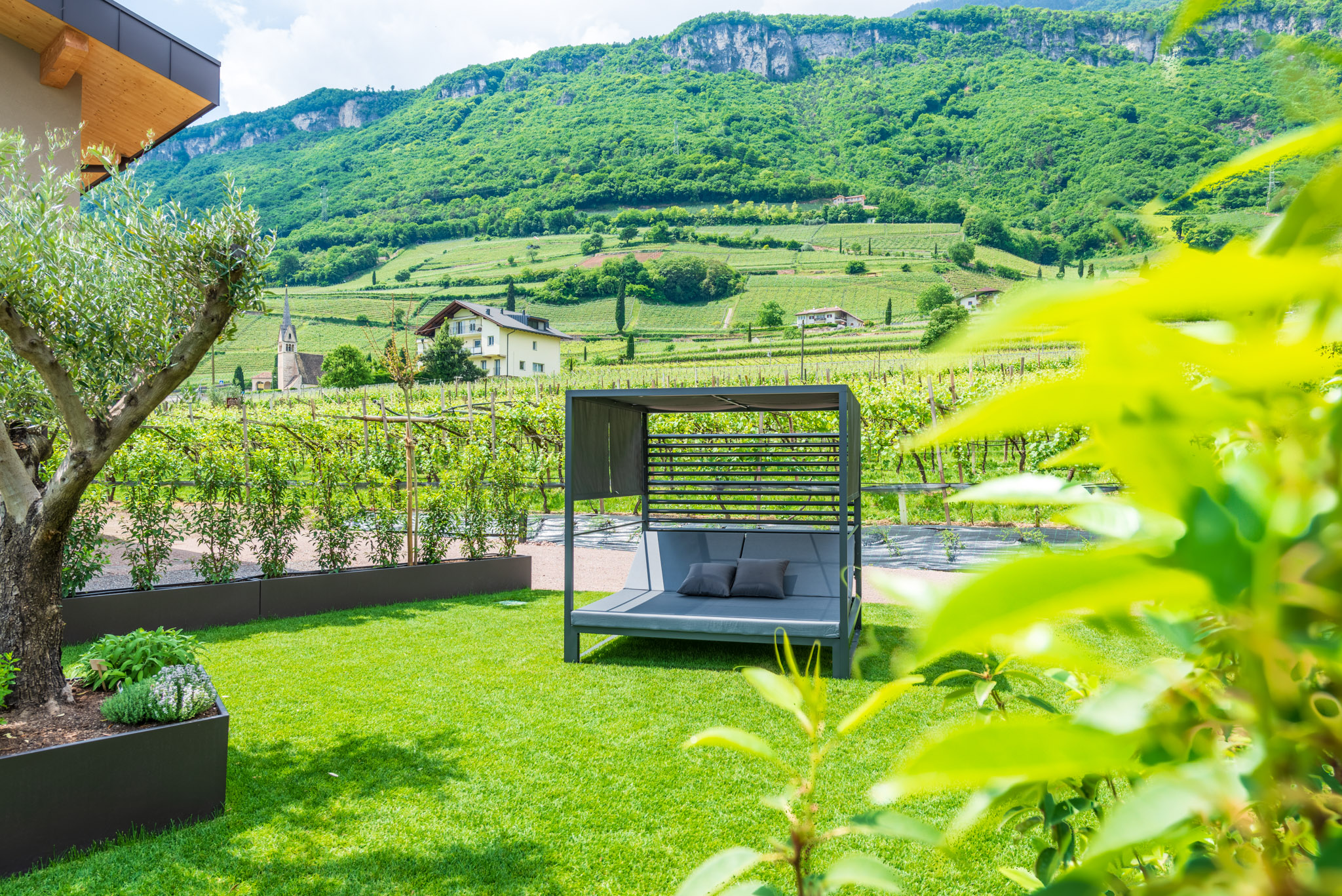 Circondato da ondulati vigneti, lontano dal caos e dalla frenesia del centro di Termeno, troverete il luogo di vacanza dei vostri sogni nel nuovo Santinhof.